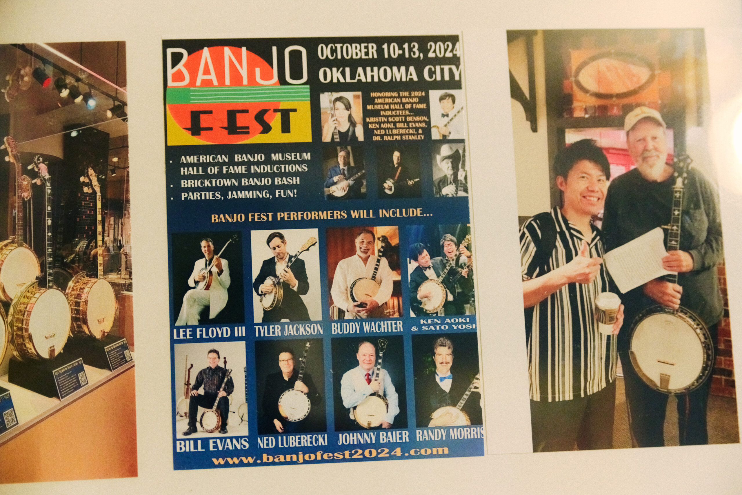 日本にプロのバンジョー奏者って数えるほどしかいません。CMでバンジョーの音が流れてきたら「あの人が弾いてるな」ってわかるくらいです。2024年には僕にバンジョーを教えてくれた青木さんがオクラホマのバンジョー博物館で殿堂入りをして、一緒に演奏する機会がありました。ふだんはコンサートで演奏したり、楽曲の編曲をしたり。自分の活動をしながら、取手では教室を開いています。