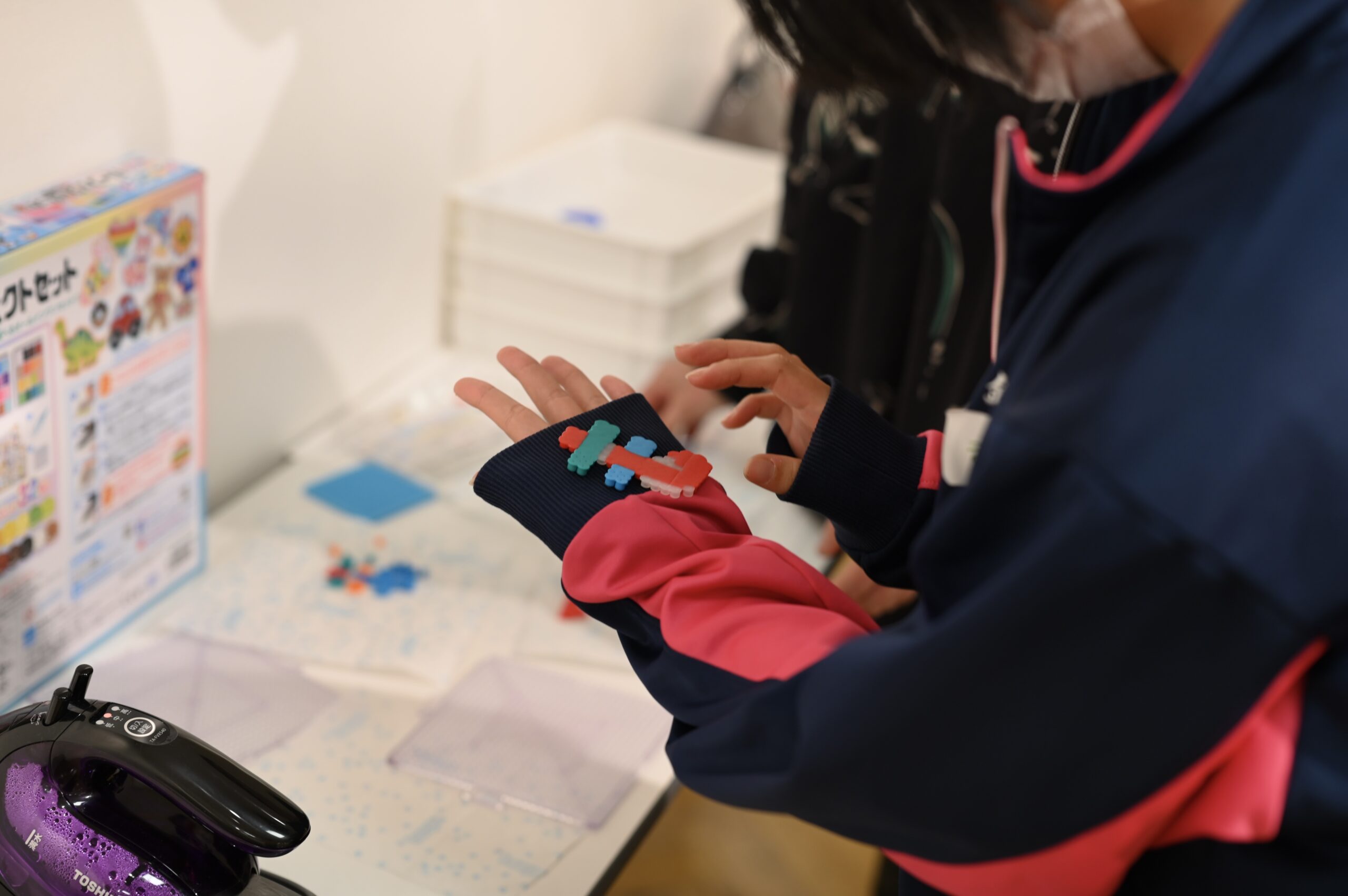 アイロンビーズでキャラクターをつくり、そのキャラクターとお話ししたことが主役になるアニメーションです。